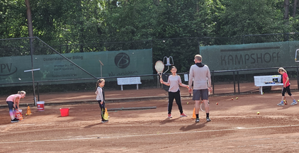 Im Anschluss an ein mehrtätiges Tenniscamp, an dem in den Osterferien 10 Kinder teilnahmen, bietet Jugendwart Lutz Dischek ein vereinsinternes und kostenloses Kindertraining jeden Mittwoch an.